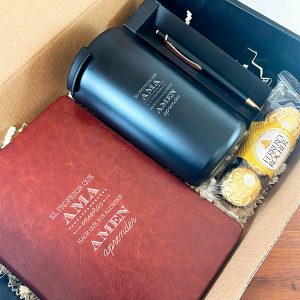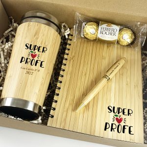 60 bolsas, 60 lanyard, 60 libretas y 60 soporte escritorio
