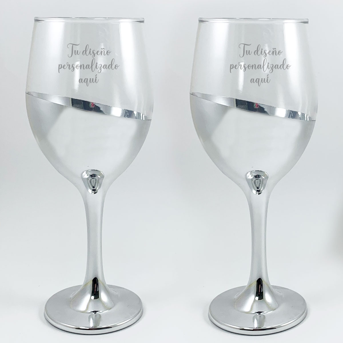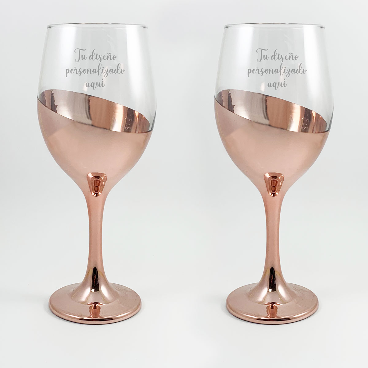 set de 6 copas pie cobrizado, con grabado personalizado, capacidad 400 ml.